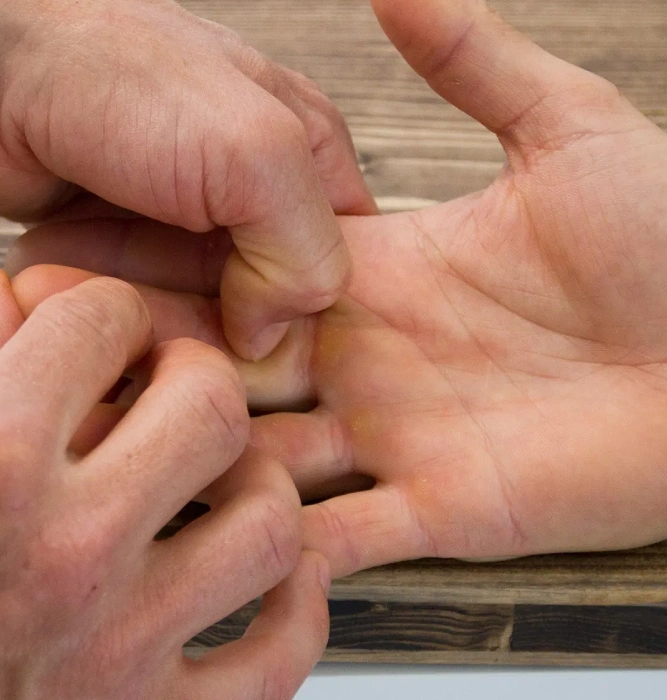 Ich arbeite an Ihren Händen sowohl mit konkreten Mobilisations-, als auch mit Druck- und Zugtechniken, die persönlich an Sie angepasst werden. Nach der Behandlung sollte in der Regel für mindestens 48 Stunden auf Klettern verzichtet werden, damit das Gewebe zur Ruhe kommt und in dieser Zeit körpereigene Reparaturprozesse ablaufen können. Die genauen Einschätzungen zum individuellen Vorgehen gebe ich Ihnen jeweils während der Therapie.